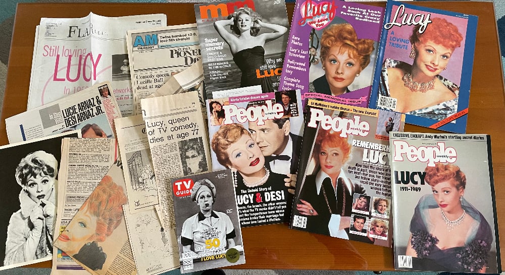Here is a big vintage lot of Lucille Ball tribute magazines and clippings!
