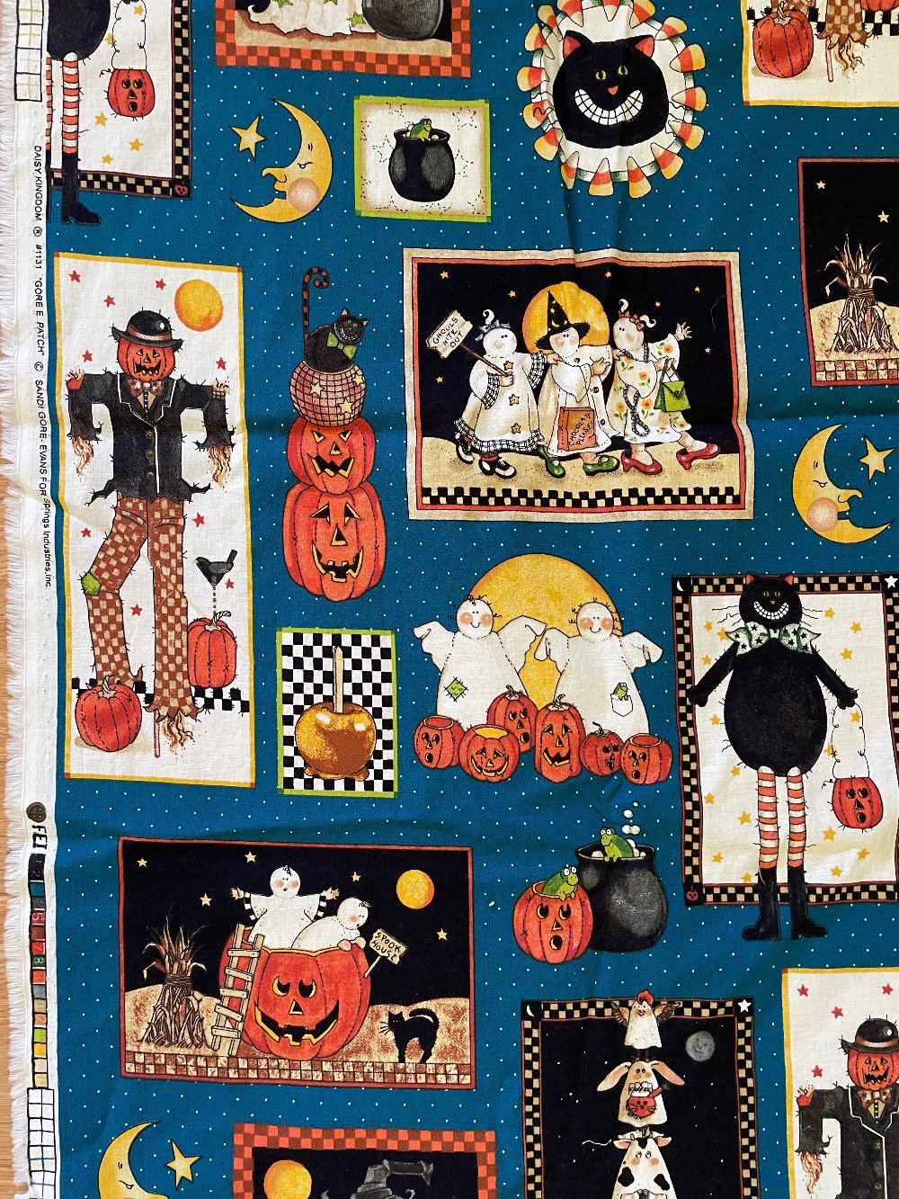 Here is a vintage one yard+ of Daisy Kingdom Halloween fabric!