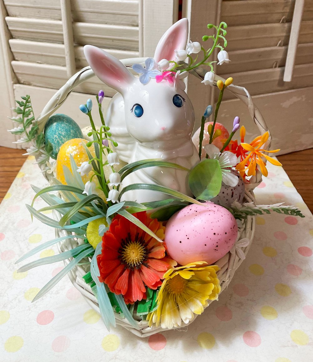 Vintage Bunny Easter Spring Basket Decoration
