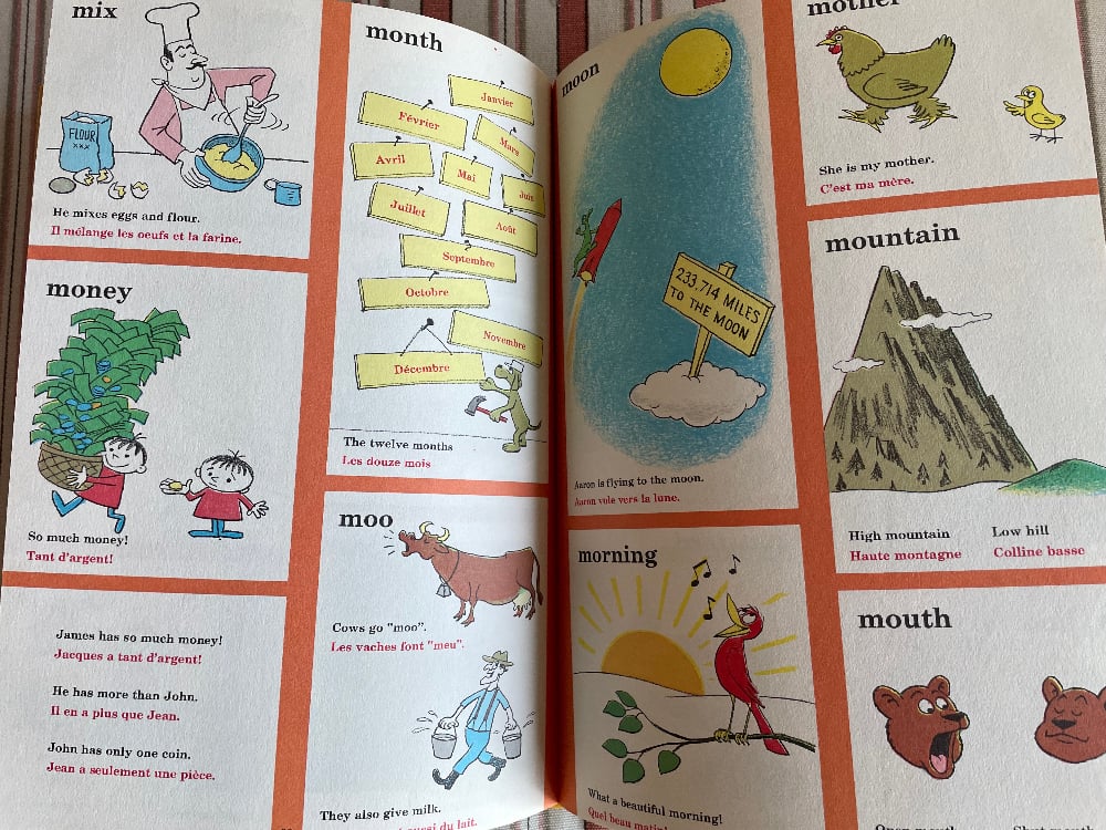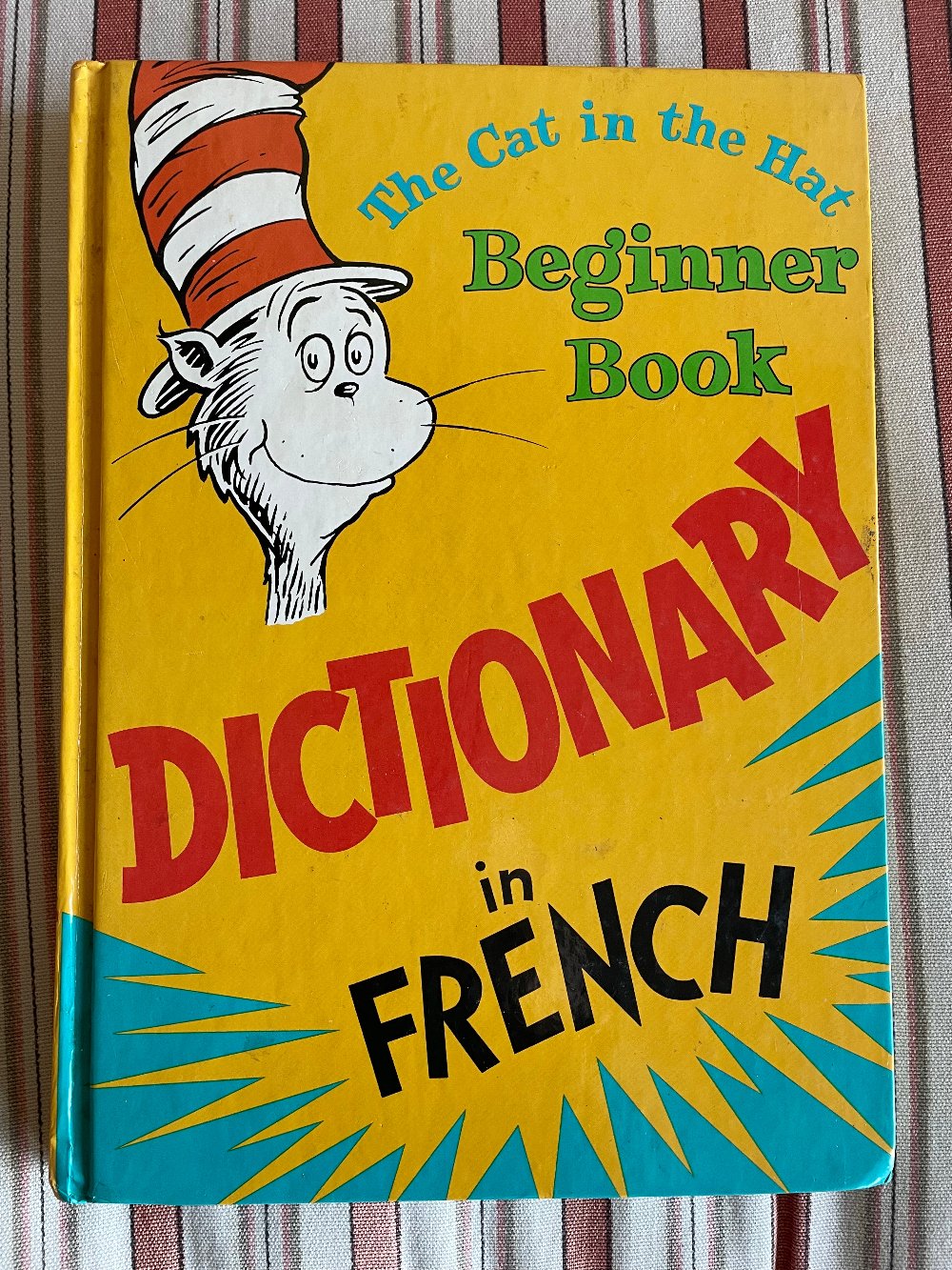 Here is a fun vintage large size book: The Cat in the Hat Dictionary in French.