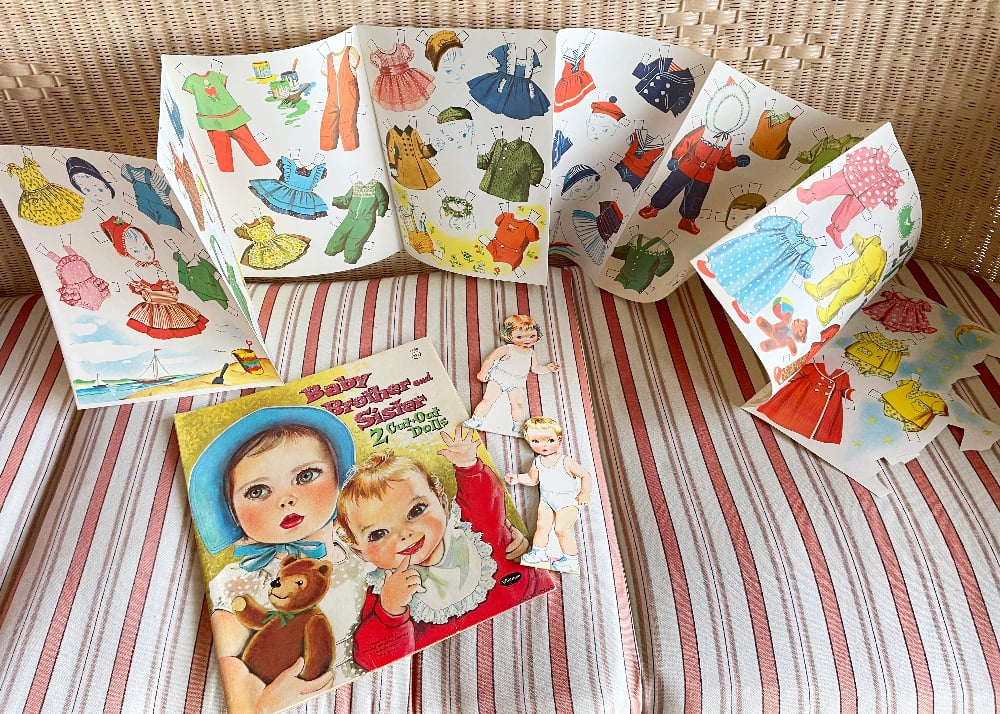 Here is a cute vintage paper dolls set: Baby Brother and Sister.
