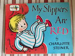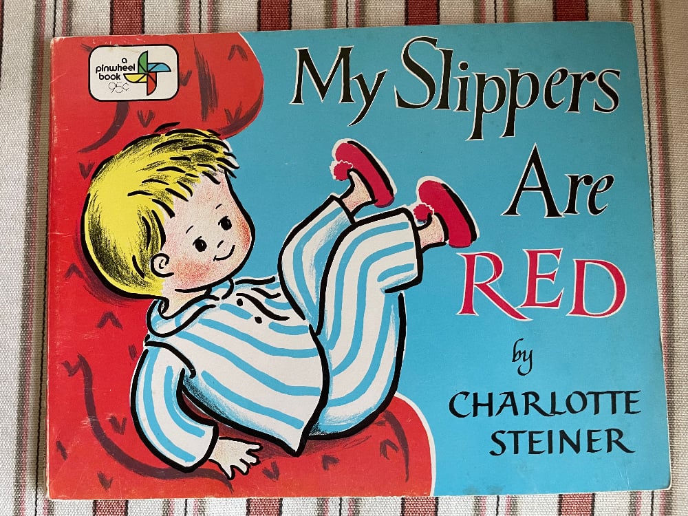 Here is a vintage soft cover book: My Slippers are Red. Cute illustrations!