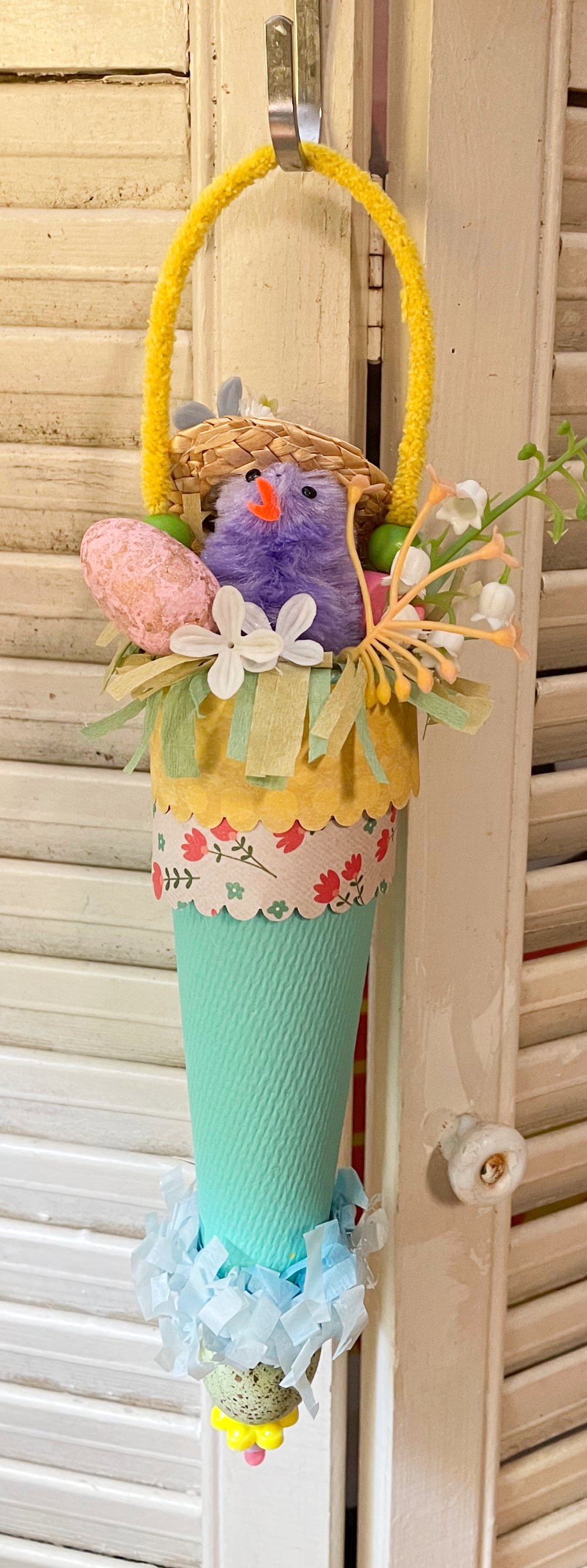 Here is a fun Easter/spring decoration made with vintage and new materials!