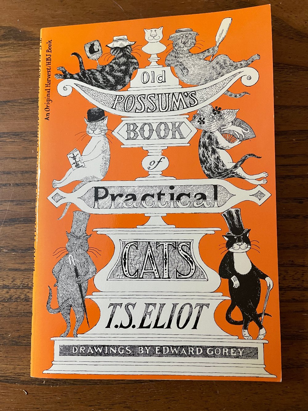 Here is a vintage book: TS Eliot Book of Practical Cats, illustrated by Edward Gorey. What the musical "Cats" is based on. Soft cover.